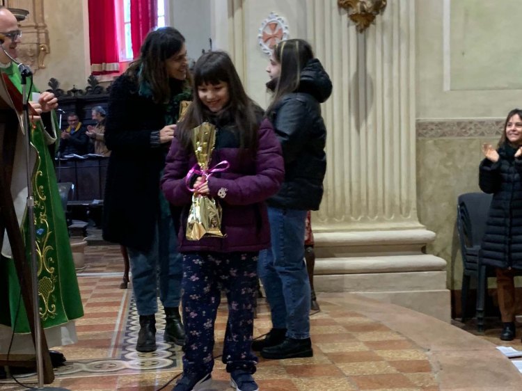 Premiazione dei bambini del catechismo per la gara di presepi a Bibbiano