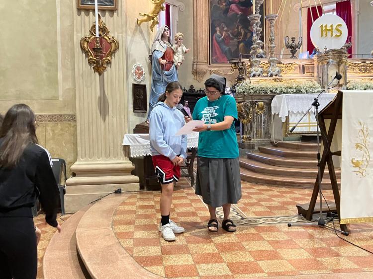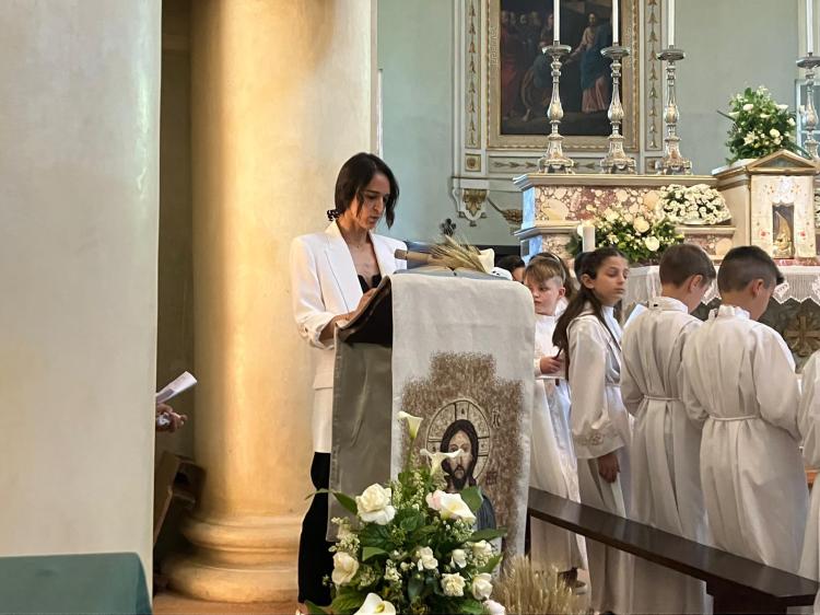 Domenica 19 maggio i bambini e bambine di Bibbiano hanno ricevuto il sacramento della Prima Comunione. Ad accompagnarli le loro catechiste suor Massimina e Alessia.