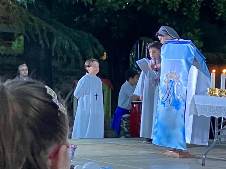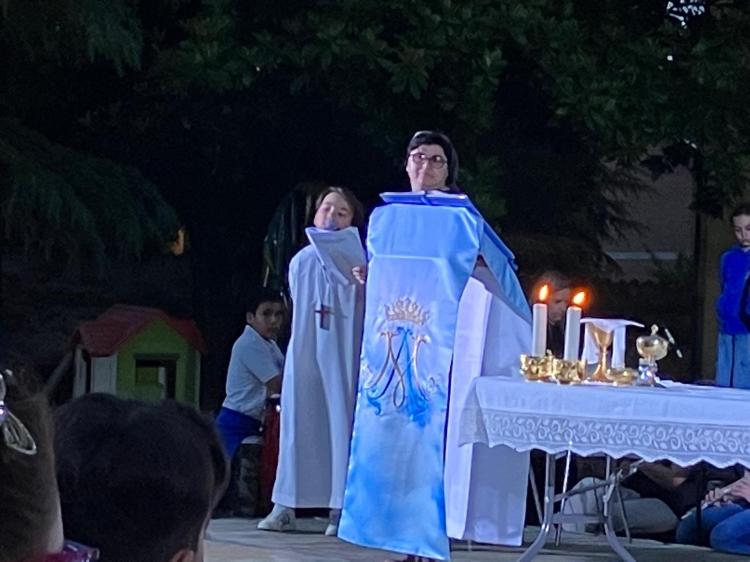 Venerdì 24 maggio nel cortile dell’ist. salesiano è stata celebrata la S. Messa solenne in onore a Maria Ausiliatrice. Alla celebrazione hanno partecipato i bambini e bambine che quest’anno hanno ricevuto la Prima Comunione. I ragazzi delle classi medie dell’istituto hanno animato la messa intonando diversi canti liturgici. Alla fine della funzione le suore hanno offerto un fresco e dolce pensiero a tutti i bambini presenti.
