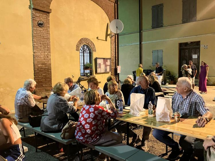 Sabato 7 settembre a Barco cena in allegria per la sagra di San Rocco. Nel cortile della canonica una cena conviviale a base di gnocco fritto e tanta allegria organizzata dai volontari della parrocchia di Barco.