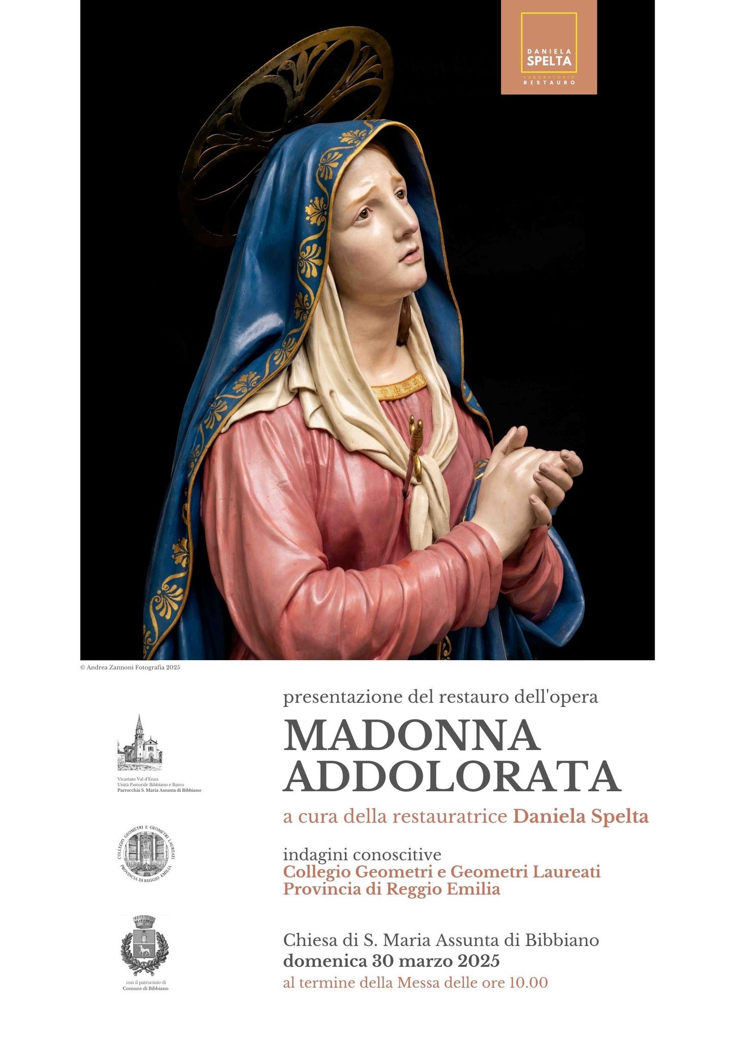 Domenica 30 marzo dopo la S. Messa delle ore 10.00 a Bibbiano la curatrice Daniela Spelta ha presentato il restauro dell’opera la “Madonna Addolorata”.