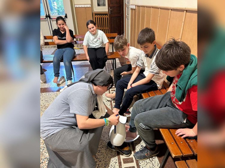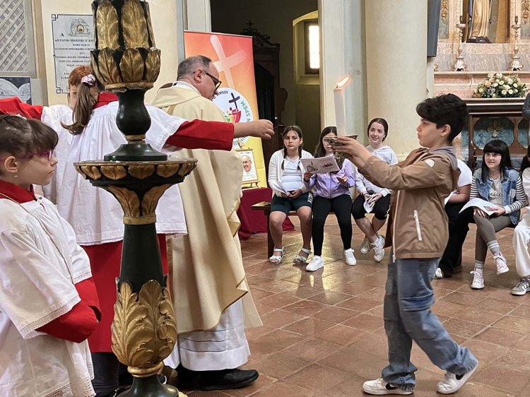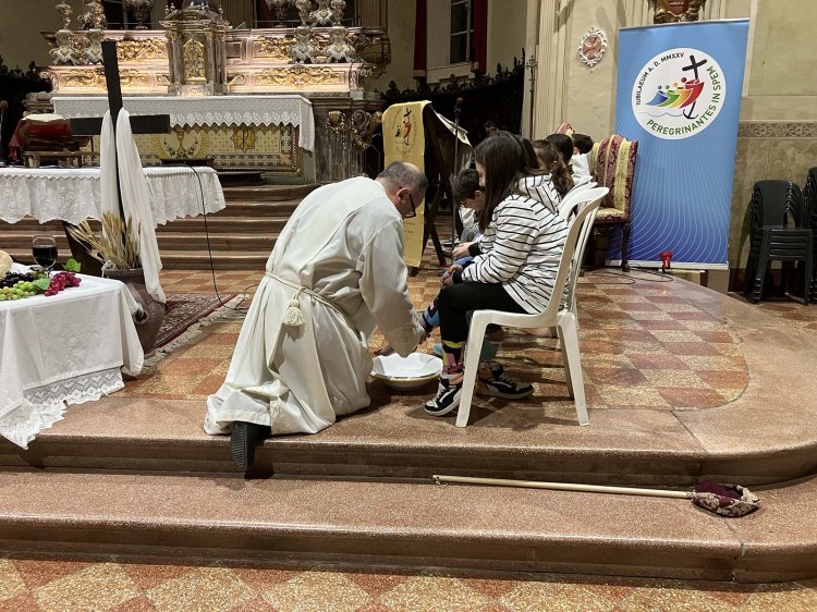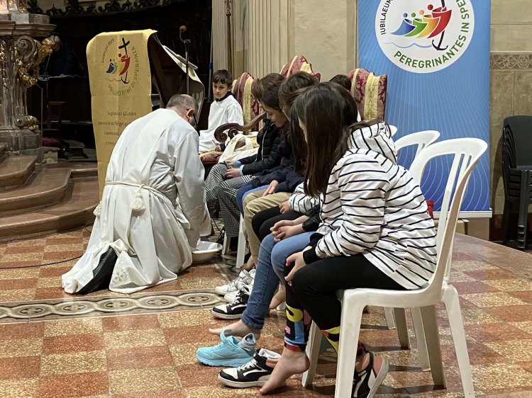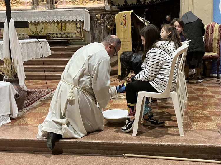 Giovedì 17 aprile i bambini di quarta elementare hanno animato la S. Messa della Cena Domini con il rito della lavanda dei piedi. I ragazzi riceveranno il sacramento della Prima Comunione nel mese di maggio.