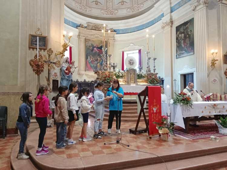 Domenica 11 maggio i bambini di seconda, terza e quarta elementare di Barco hanno fatto un ritiro davvero speciale. Prima un breve pellegrinaggio all’oratorio di San Giovanni attraverso i campi verdi e pieni di fiori. Dopo una riflessione sul Vangelo con drammatizzazione. Infine sono rientrati per partecipare alla S. Messa delle ore 11.30 e pranzare insieme.